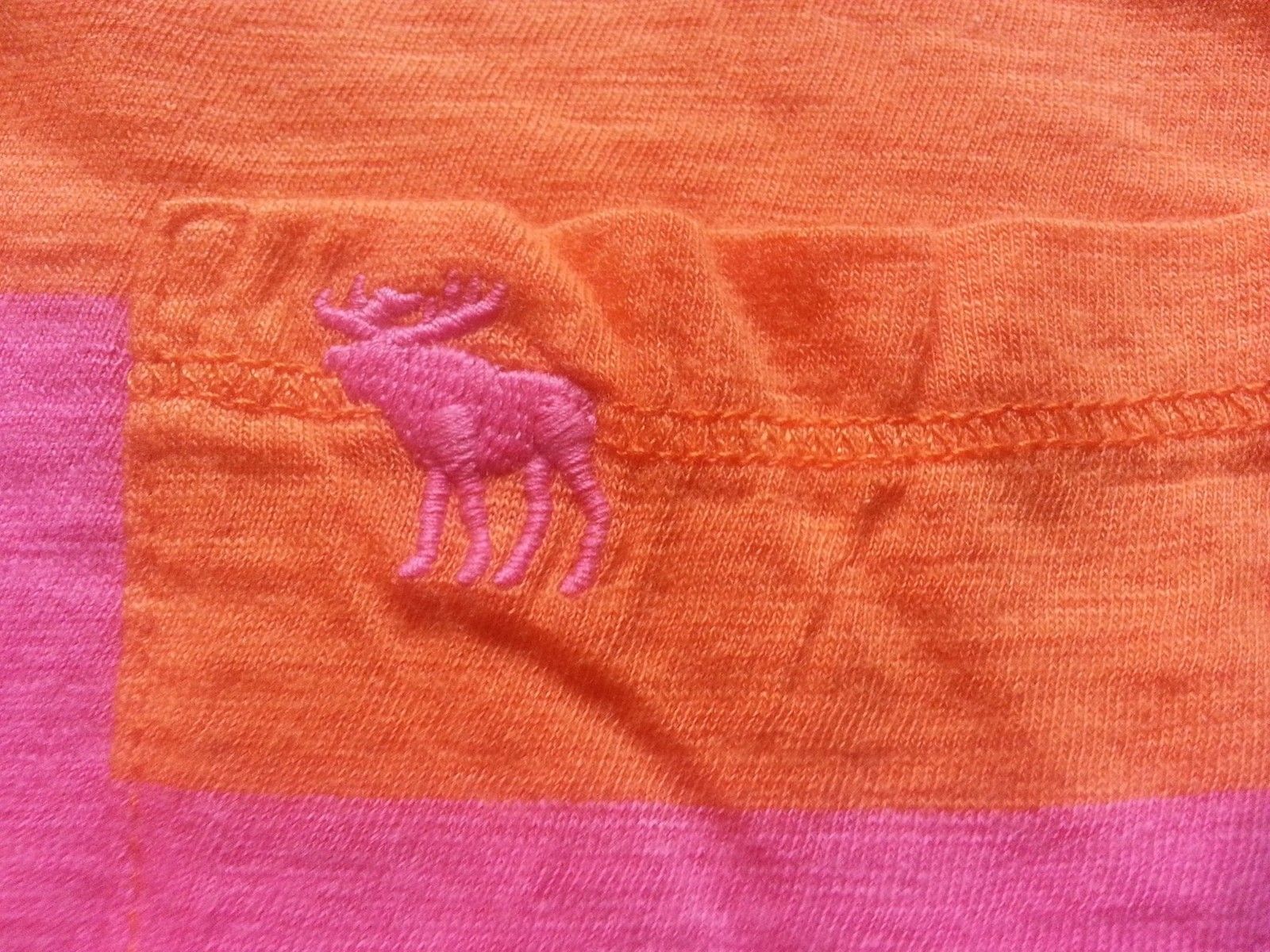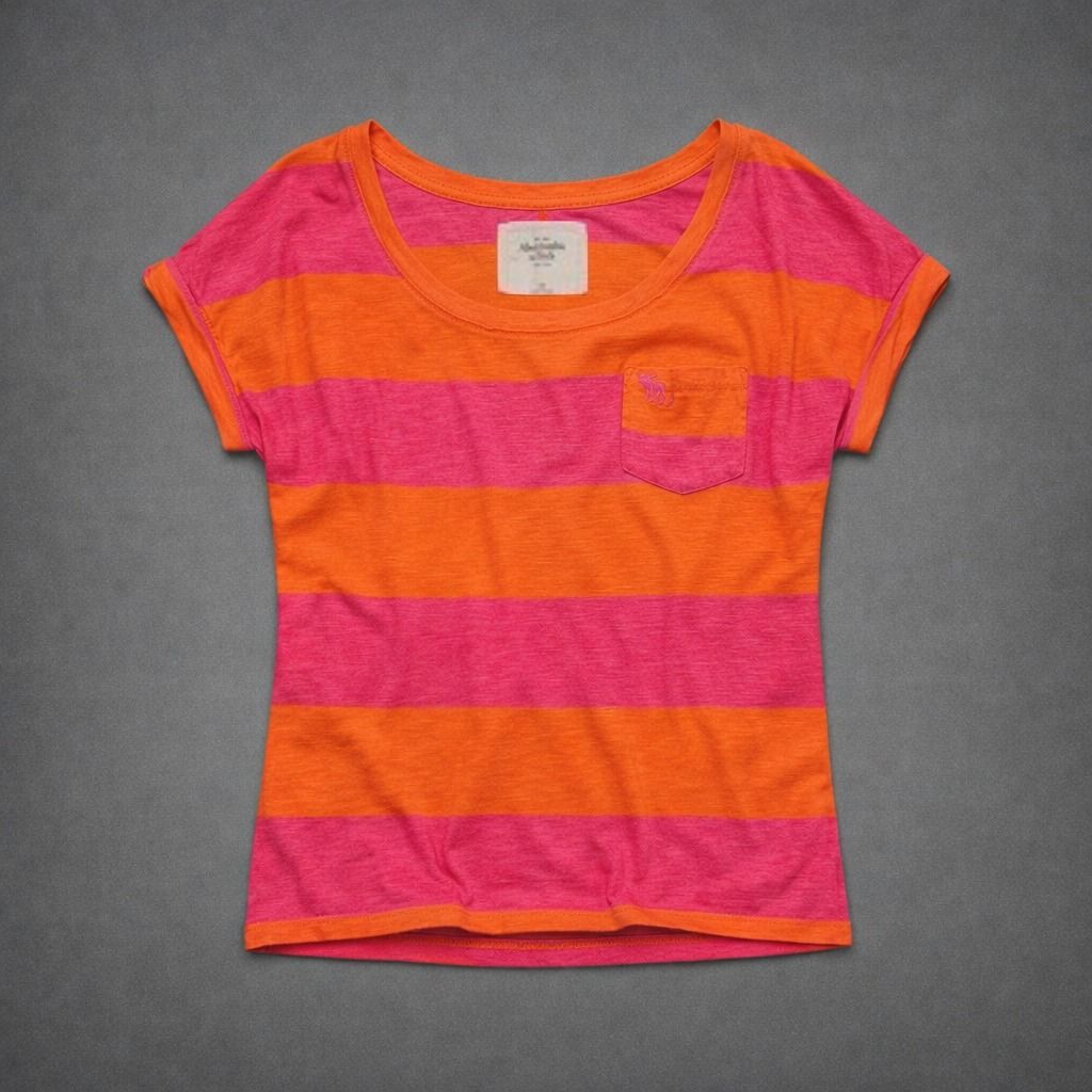 Stylové dámské tričko Abercrombie & Fitch s krátkým rukávem a trendy střihem přes rameno v živých oranžovo-růžových pruzích. Lehký a příjemný materiál zajišťuje pohodlí po celý den, zatímco kapsička na hrudi dodává moderní detail. Skvělá volba pro letní outfity i volnočasové nošení.